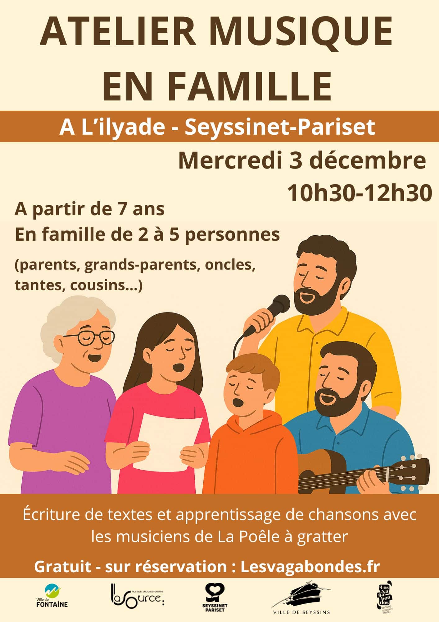 Aux côtés des musiciens de La Poêle à gratter, partager un beau moment en famille autour de l’écriture et l’interprétation de chansons.